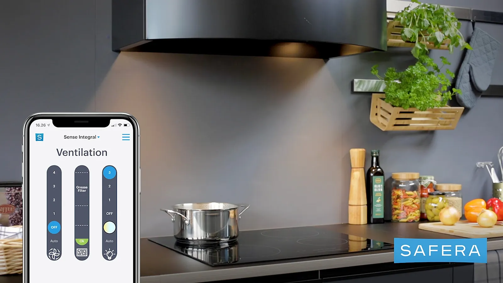 Kun annat Safera Sense Integralin ohjata valaistusta ja ilmanvaihtoa automaattisesti, voit keskittyä ruoanlaittoon ja täydellisen aterian loihtimiseen sinulle ja perheellesi.