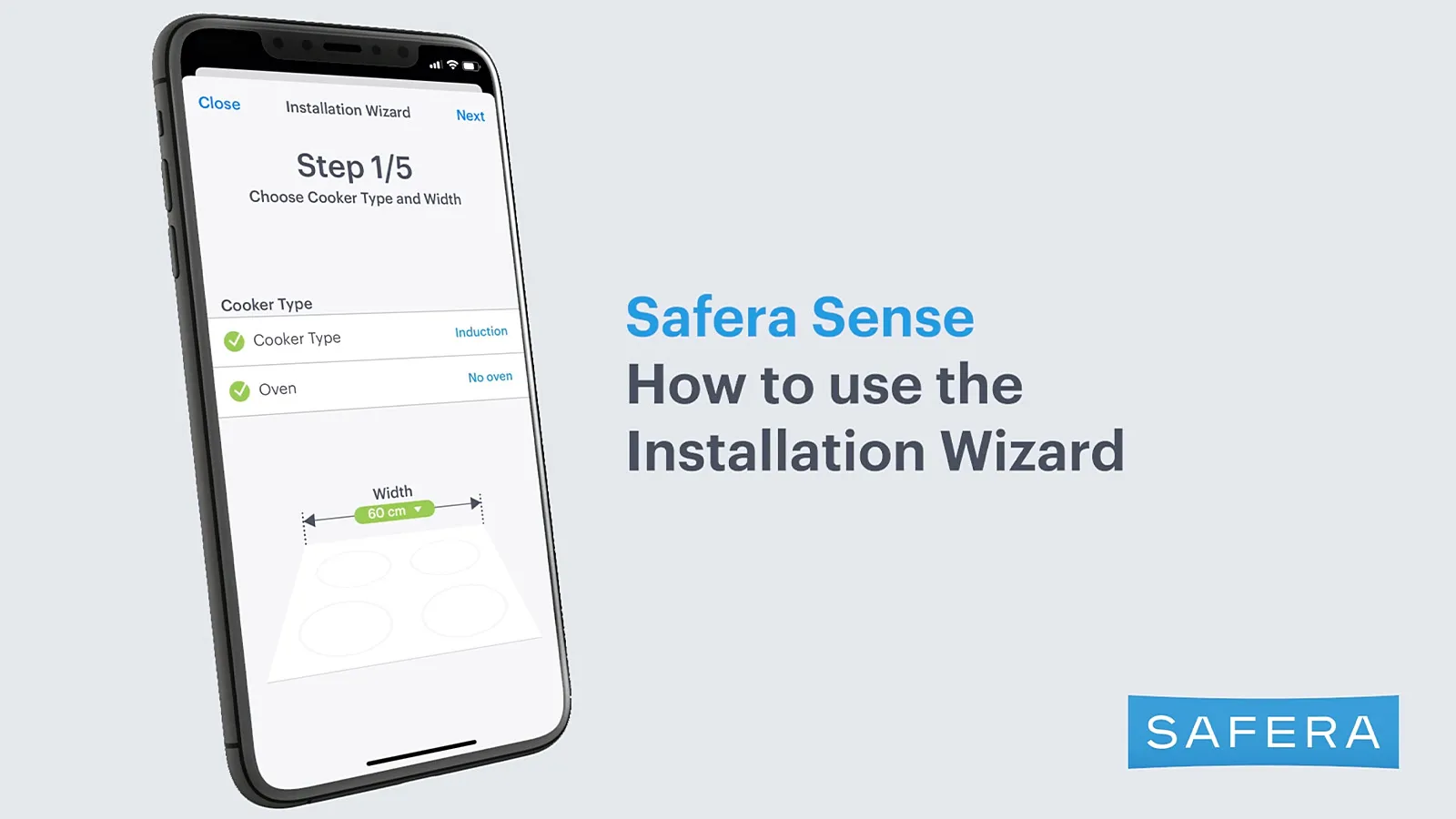 Installation wizard: Download the free mobile Safera App and follow the installation guide from start to finish. The app helps you ensure that your stove guard is installed perfectly for your stove and kitchen.