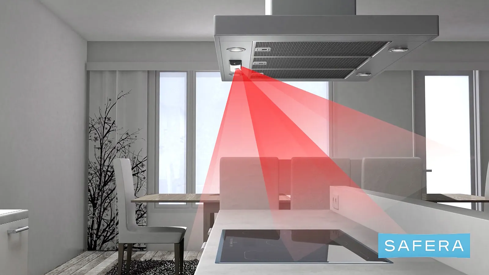The sensor unit is usually installed about 50 cm above the stove. Depending on the stove guard model, the permitted installation height can be 45–90 cm. There is also a model, Safera Aurora, which can be installed on the kitchen ceiling at a height of up to 3.5 metres.